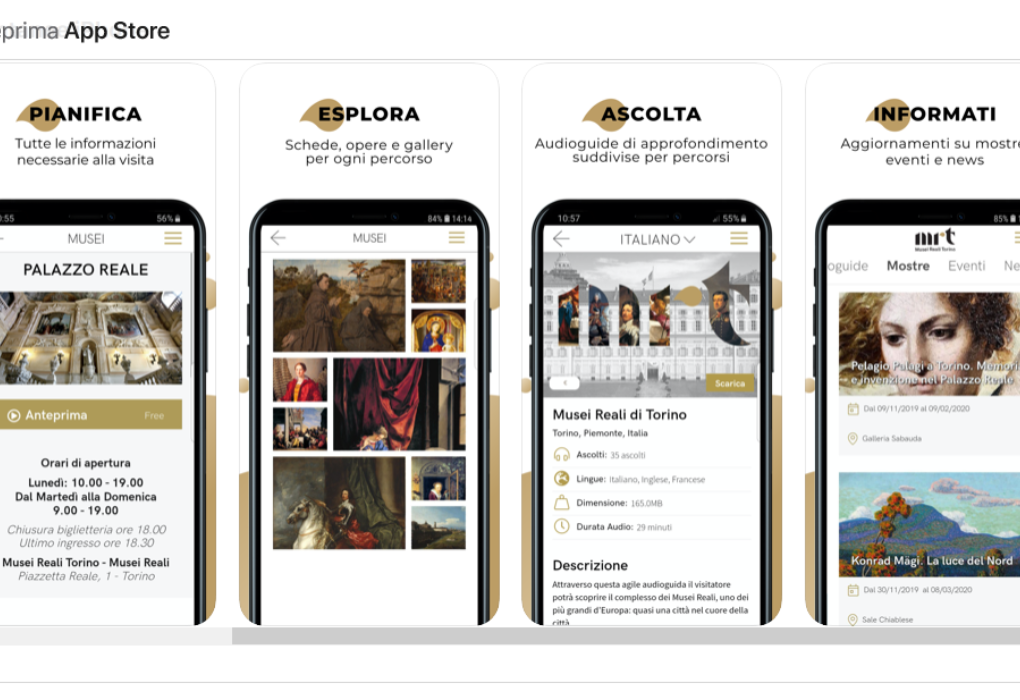 The app provides a general audioguide which includes all the itineraries – 35 audio tracks – and specific additional audioguides providing constantly updated contents for each itinerary.